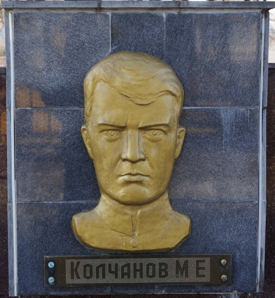 В октябре 1943 года при форсировании реки Днепр в районе деревни Глушец, ныне Лоевского района Гомельской области, гвардии старший сержант М.Е. Колчанов первым из полка вплавь вместе с разведчиками переправился через Днепр и обеспечил переправу на лодках начальника разведки дивизиона и органов управления дивизиона.