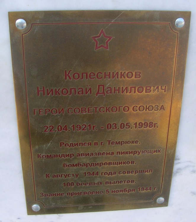 Колесников Николай Данилович - командир авиационного звена 12-го гвардейского Гатчинского пикирующего бомбардировочного авиационного полка (8-я минно-торпедная авиационная дивизия, ВВС Краснознамённого Балтийского флота), гвардии старший лейтенант.