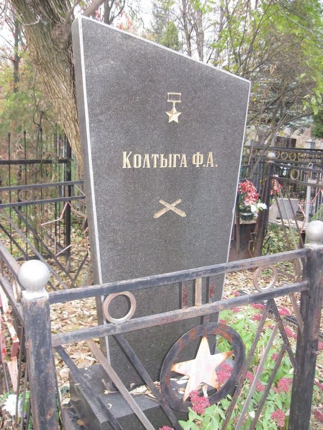 В сентябре 1943 года Ф.А.Колтыга в наступательных боях на территории Украины был тяжело ранен, проходил длительное лечение в госпитале в Ростове. После излечения был направлен в Сталинградское артиллерийское училище, которое окончил в 1945 году. С 1947 года лейтенант Ф.А.Колтыга – в запасе.
