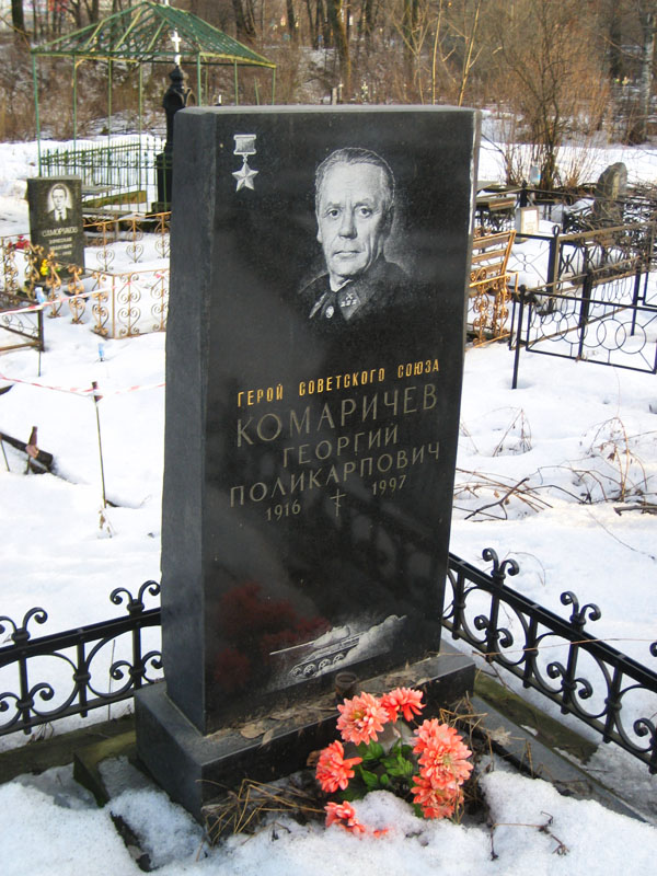 Комарычев Георгий Поликарпович – командир орудия танка Т-34 52-й гвардейской Фастовской танковой бригады 6-го гвардейского Киевско-Берлинского танкового корпуса 3-й гвардейской танковой армии 1-го Украинского фронта, гвардии старший сержант.