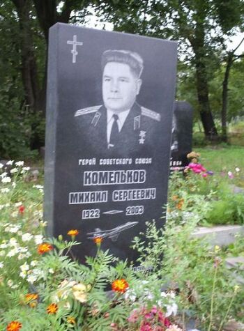 Заместитель командира 104-го гвардейского Краковского истребительного авиационного полка (9-я гвардейская истребительная авиационная дивизия, 2-я воздушная армия, 1-й Украинский фронт) гвардии капитан Михаил Комельков к 9 мая 1945 года совершил 321 успешный боевой вылет, в 75 воздушных боях сбил лично 32 и в группе 7 вражеских самолётов. Штурмовками сжег на земле 1 самолёт лично и 2 - в группе.