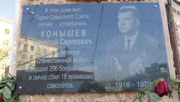 Конышев Николай Сергеевич – командир эскадрильи 163-го истребительного Седлецкого Краснознаменного авиационного полка (336-я истребительная Ковельская Краснознаменная авиационная дивизия, 15-я воздушная армия, 2-й Прибалтийский фронт), майор.