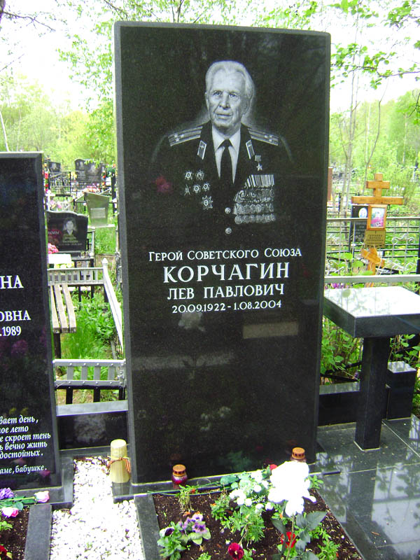 Корчагин Лев Павлович - командир эскадрильи 566-го Солнечногорского Краснознамённого штурмового авиационного полка 277-й Красносельской Караснознамённой ордена Суворова 2-й степени штурмовой авиационной дивизии 1-й воздушной армии 3-го Белорусского фронта, капитан.