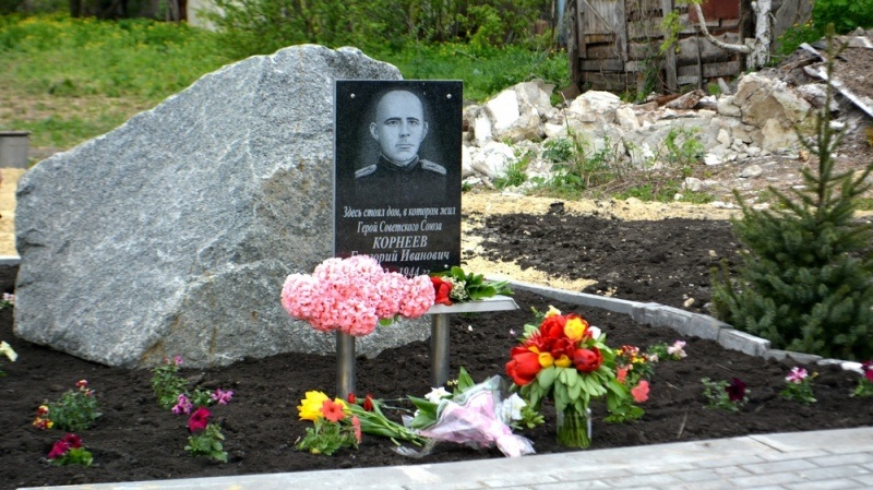 Именем Героя названы улицы в городах Владикавказ и Дубоссары. В центре села Рудня установлен памятник Г.И.Корнееву. Там же на месте дома, где жил Г.И.Корнеев, установлен памятный знак. Бюсты Героя установлены в районном центре – селе Воробьевка на Аллее Героев в сквере Воинской славы, в городе Дубоссары на воинском мемориале Кургана Славы, в городе Калач на Аллее Героев в Парке Памяти Героев Великой Отечественной войны. На здании Руднянской средней общеобразовательной школы установлена мемориальная доска.
