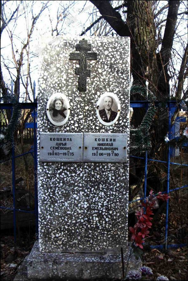 Кошкин Николай Емельянович - наводчик пулемёта 1042-го стрелкового полка (295-я стрелковая Херсонская Краснознамённой ордена Суворова 2-й степени дивизия, 32-й стрелковый ордена Суворова 2-й степени корпус, 5-я ударная армия, 1-й Белорусский фронт), младший сержант - к моменту представления к награждению орденом Славы 1-й степени.