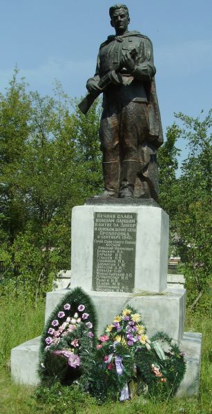 Возле могилы, где похоронен Герой воздвигнут памятник советскому воину.