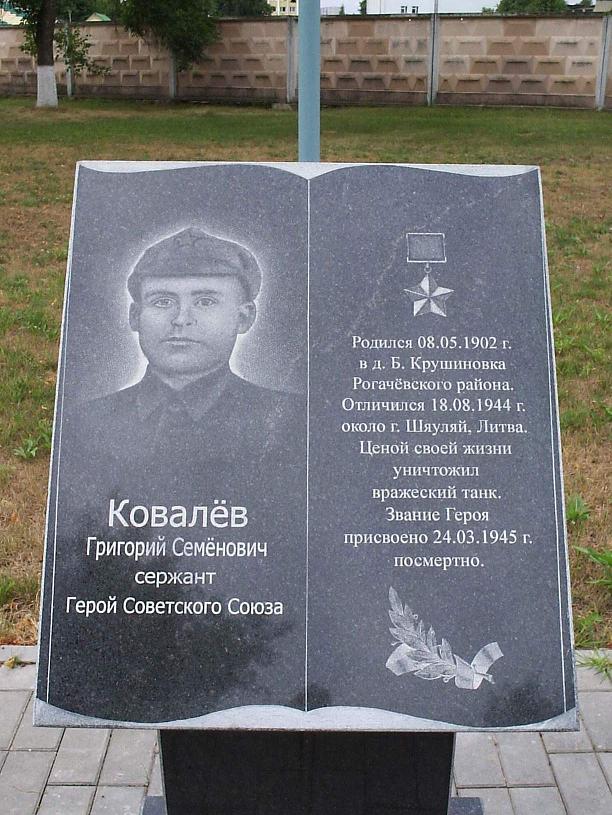 Ковалёв Григорий Семёнович - стрелок 2-й гвардейской мотострелковой бригады 3-го гвардейского танкового корпуса 5-й гвардейской танковой армии 1-го Прибалтийского фронта, гвардии сержант.