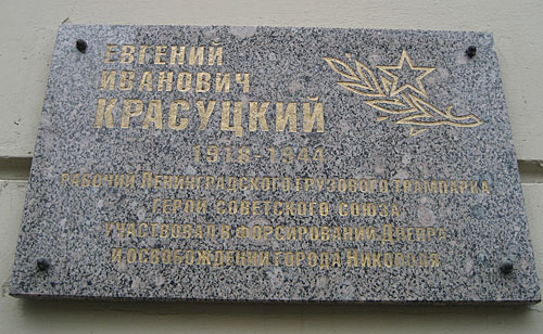 В боях с врагом коммунист Е. И. Красуцкий был снова ранен, но поле боя не оставил. За исключительный героизм Евгению Ивановичу присвоено звание Героя Советского Союза. Вскоре после сражения за Никополь Е. И. Красуцкий в горячей схватке с врагом был тяжело ранен и погиб смертью храбрых. Короткая, но славная жизнь Евгения Красуцкого достойна восхищения.