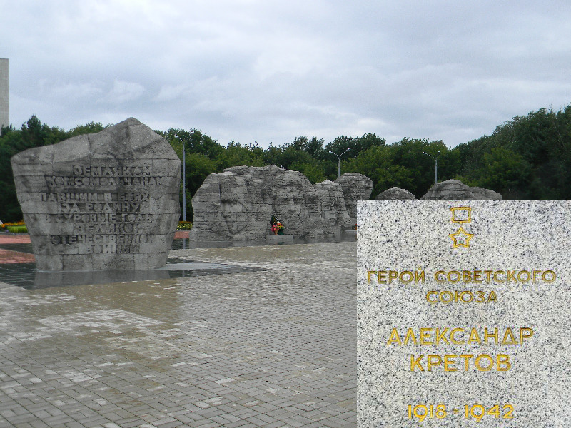 Участник Великой Отечественной войны с августа 1941 года. Военный комиссар танковой роты 2-го танкового батальона (14-я танковая бригада. 40-я армия, Юго-Западный фронт) политрук Александр Кретов в боях 14 января 1942 года у деревни Выползово и 19 января 1943 года у деревни Машнино Солнцевского района Курской области лично уничтожил пять и подбил два вражеских танка, подавил несколько огневых точек.