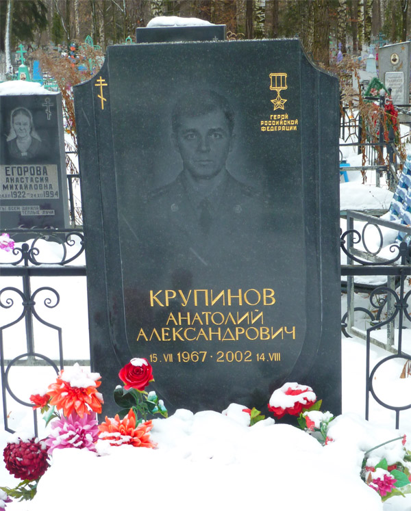 За мужество и героизм, проявленные при выполнении воинского долга в Северо-Кавказском регионе Указом Президента Российской Федерации от 27 декабря 2002 года капитану Крупинову Анатолию Александровичу присвоено звание Героя Российской Федерации (посмертно).