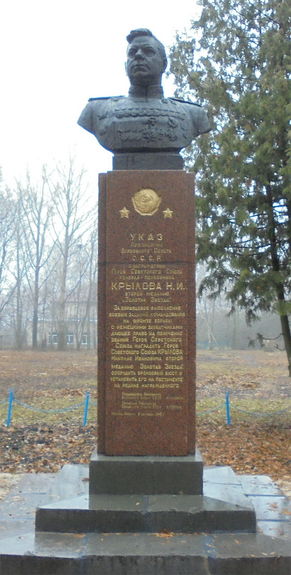 Бронзовые бюсты Н.И.Крылова установлены в селе Вишневое и в районном посёлке Тамала Пензенской области. Его именем названы улицы в городах Одинцово, Пенза, Севастополь. В Москве на здании штаба Московского военного округа, в котором работал Н.И.Крылов, установлена мемориальная доска. В 1972-1993 годах имя Героя носило Харьковское высшее военное командно-инженерное училище ракетных войск.