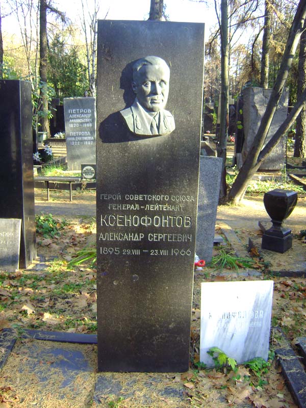 С 29 апреля 1953 года генерал-лейтенант А.С.Ксенофонтов – в отставке. Жил в Москве. Умер 23 августа 1966 года. Похоронен в Москве на Новодевичьем кладбище (участок 6).