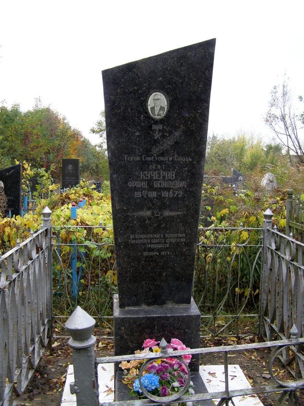 С февраля 1941 года лейтенант Ф.Я.Кучеров – в отставке. В годы Великой Отечественной войны работал на Западной железной дороге, затем – руководителем общепита в городе Бердичев Житомирской области (Украина).