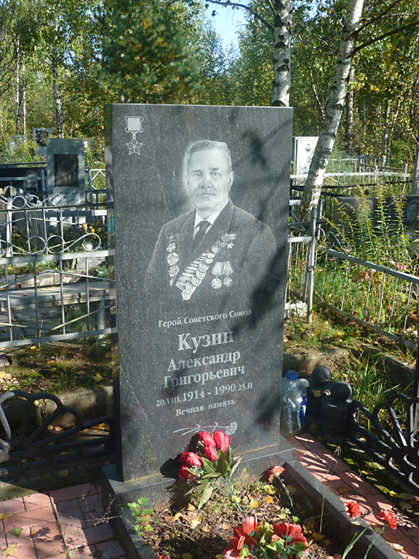 Кузин Александр Григорьевич - штурман 90-го гвардейского штурмового Староконстантиновского Краснознамённого авиационного полка 4-й гвардейской штурмовой Киевской Краснознамённой ордена Кутузова авиационной дивизии 5-го штурмового Винницкого Краснознамённого орденов Кутузова и Богдана Хмельницкого авиационного корпуса 2-й воздушной армии 1-го Украинского фронта, гвардии майор.