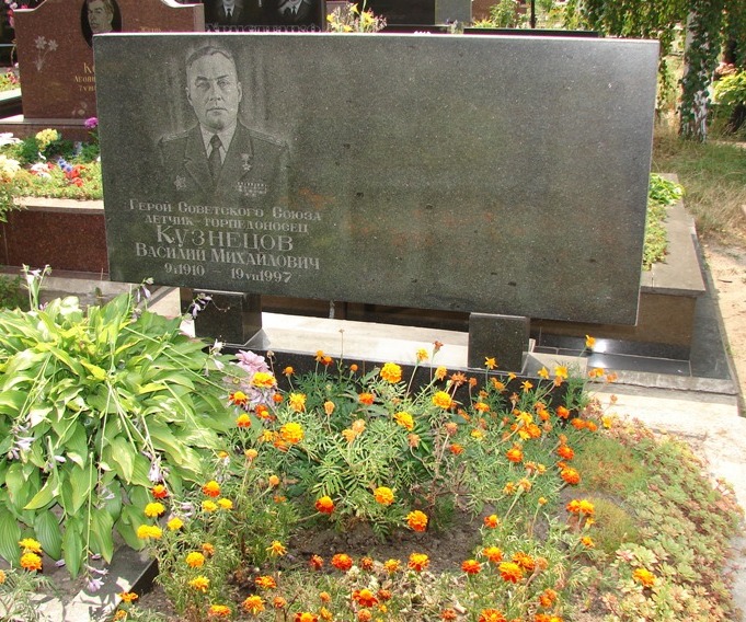 Кузнецов Василий Михайлович – помощник командира по лётной подготовке и воздушному бою 1-го гвардейского минно-торпедного авиационного полка 8-й минно-торпедной авиационной дивизии Военно-воздушных сил Балтийского флота, гвардии майор.