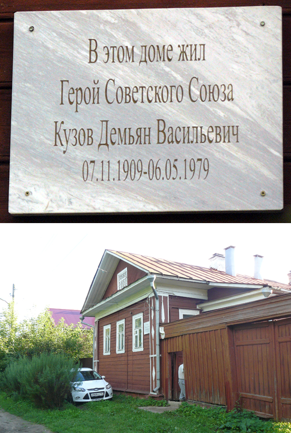 Набережная в Кашине, на которой жил Герой, носит имя Демьяна Кузова. На доме № 7 этой набережной, в котором он жил, установлена мемориальная доска.