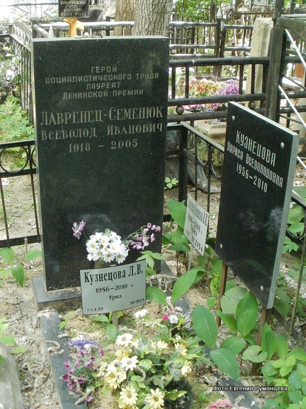 Лавренец-Семенюк Всеволод Иванович – заместитель главного конструктора ОКБ-456 Государственного комитета Совета Министров СССР по оборонной технике, Московская область.