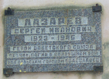 Лазарев Сергей Иванович - командир звена 728-го истребительного Шумско-Кременецкого Краснознаменного авиационного полка (256-я истребительная авиационная дивизия, 5-й истребительный авиационный корпус, 2-я воздушная армия, 1-й Украинский фронт), лейтенант.