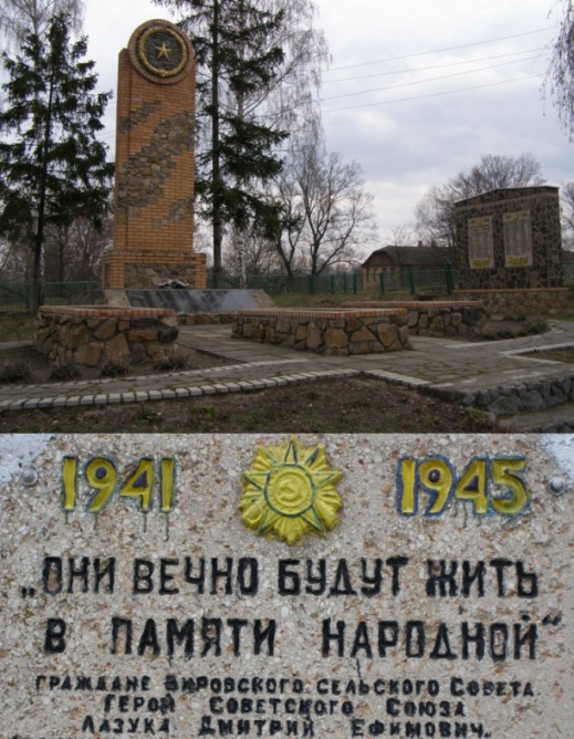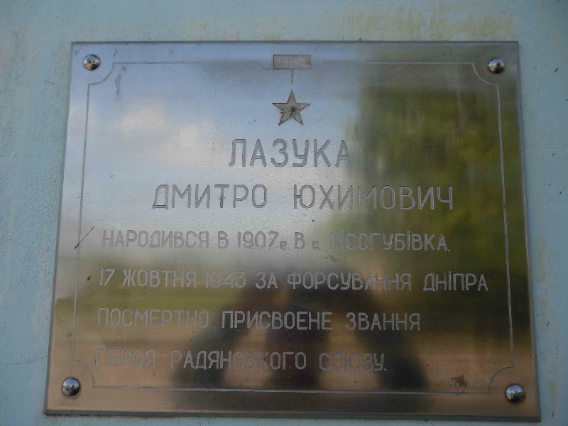 При форсировании реки южнее Тетерева особо отличился связной командира роты Д.Е. Лазука. Как опытному гребцу, командир роты поручил ему переправлять наших бойцов на правый берег реки. Отважный воин перевез первую группу смельчаков, затем вторую. Фашисты вели непрерывный огонь. Под градом пуль и снарядов наши бойцы, преодолев водный рубеж, захватили небольшой клочок земли и стремились расширить плацдарм. Дмитрий Лазука переправил третью группу и возвращался за очередной. Огонь противника все усиливался. Бурлила вода в Днепре от разрывов снарядов. Один из них разорвался у лодки. Бесстрашный воин был убит осколками.