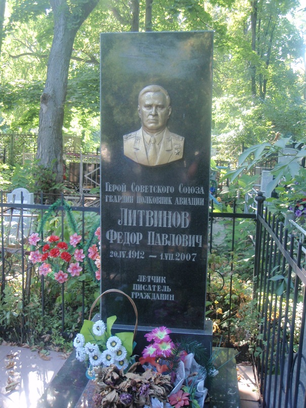 Весь обгорелый, искалеченный в боях за Родину, гвардии майор Литвинов Ф.П. до последнего боевого задания 22.04.1945 года. которое выводит его из колеи летчика, был образцом в выполнении поставленных перед ним боевых заданий и увлекал молодых летчиков своим умением воевать и точно поражать заданную цель.