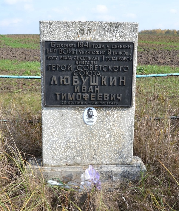 Командир танка «Т-34» 4-й танковой бригады (16-я армия, Западный фронт) комсомолец старший сержант Иван Любушкин отличился 6 октября 1941 года в бою в у села Первый Воин Мценского района Орловской области, когда советские войска встретились с основными силами 2-й танковой группы генерала Г. Гудериана.