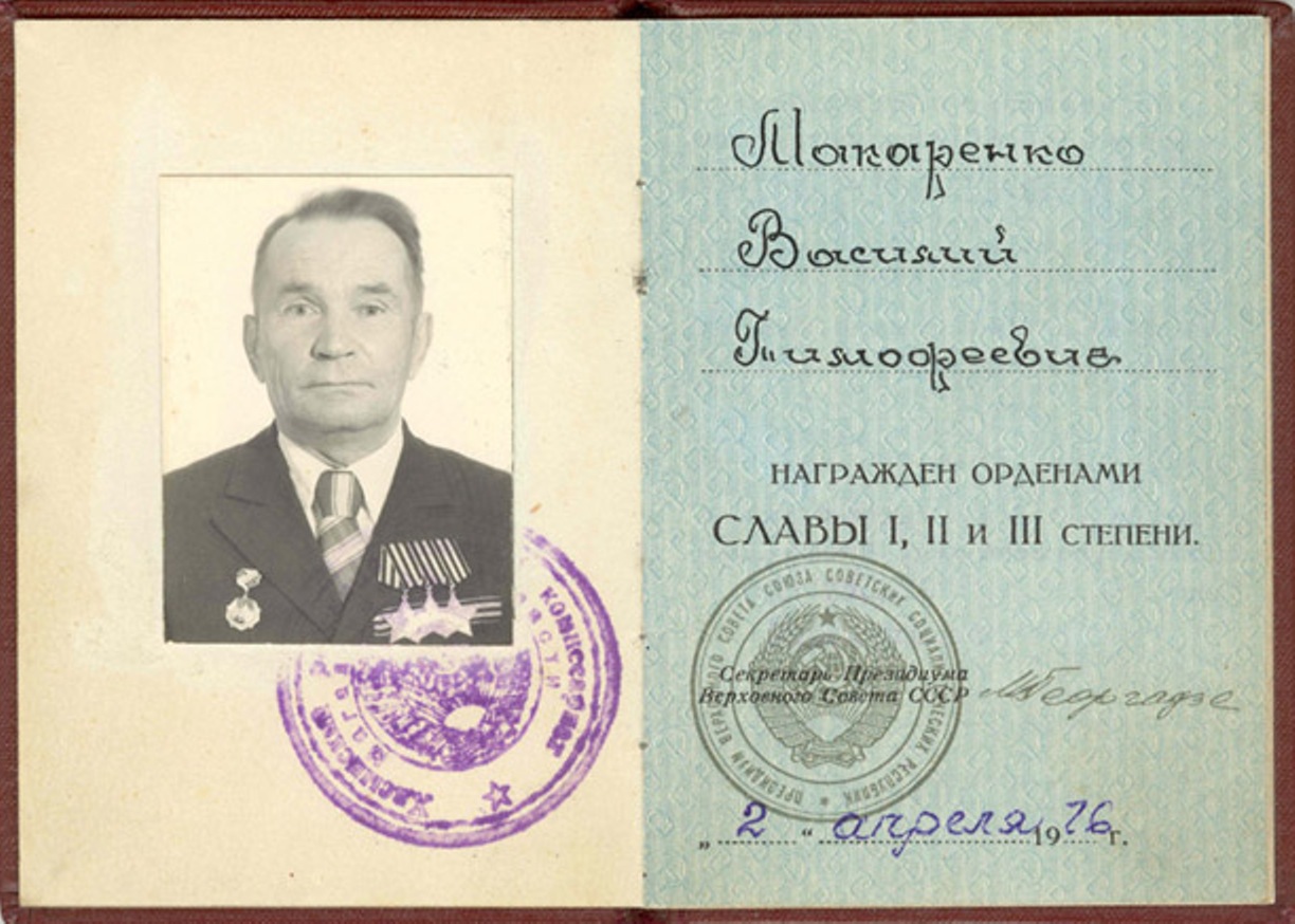 Приказом по 9-й гвардейской воздушно-десантной дивизии № 021-н от 30 июня 1944 года за мужество и отвагу, проявленные в боях, гвардии сержант Макаренко Василий Тимофеевич награждён орденом Славы 3-й степени (№ 149912).