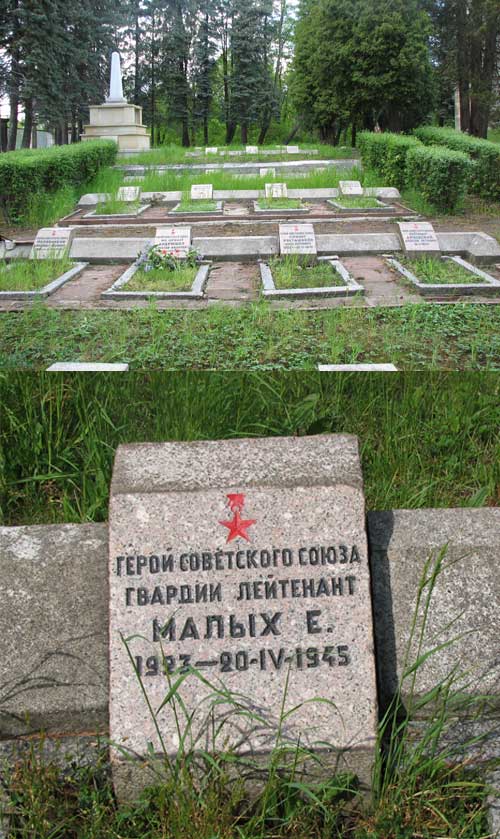 В 1944 году Е.В. Малых стал офицером, окончив курсы младших лейтенантов. Командир стрелкового взвода 25-гвардейского стрелкового полка 6-й гвардейской стрелковой дивизии гвардии лейтенант Малых 19 апреля 1945 года был тяжело ранен в бою и 20 апреля скончался в госпитале от полученных ран.