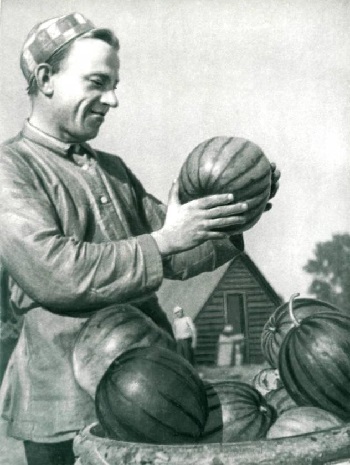 Помимо зерновых культур, звено Н.П.Малюгина на скудной подзолистой почве выращивало арбузы в неблагоприятных для бахчевых, условиях вятского климата.