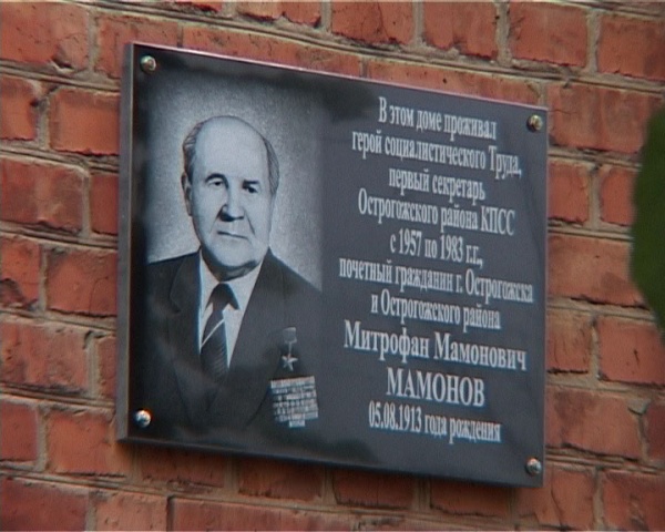Мамонов Митрофан Мамонович – первый секретарь Острогожского райкома КПСС, Воронежская область.
