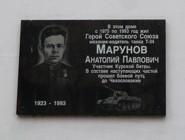 Марунов Анатолий Павлович – механик-водитель танка Т-34 1-го батальона 36-й гвардейской Нижнеднепровской танковой бригады 4-го гвардейского Сталинградского механизированного корпуса 7-й гвардейской армии 2-го Украинского фронта, гвардии старший сержант.