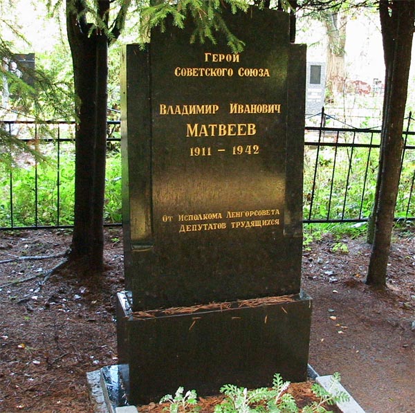 Звание Героя Советского Союза с вручением ордена Ленина и медали "Золотая Звезда" (№ 540) капитану Матвееву Владимиру Ивановичу присвоено 22 июля 1941 года.