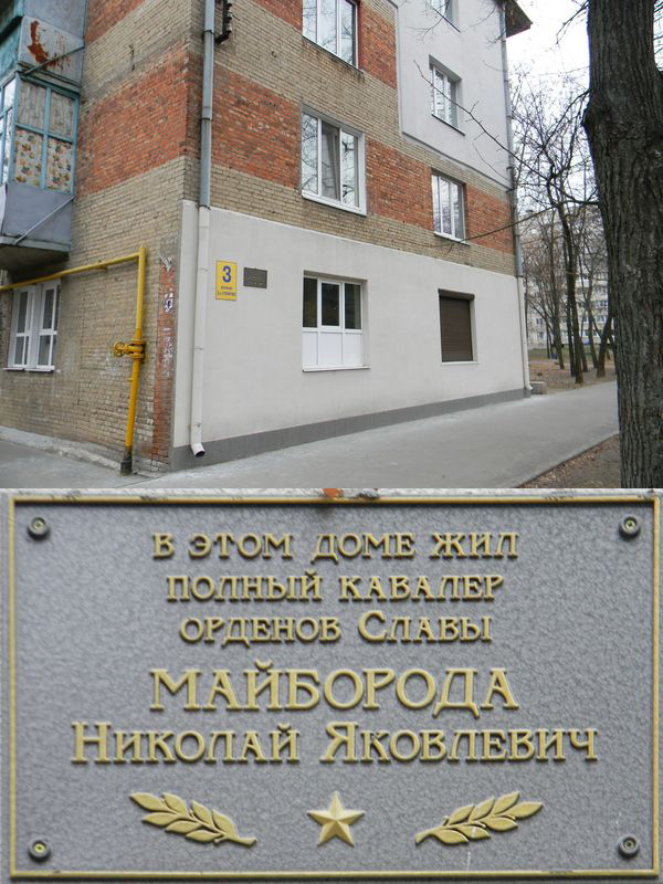 В городе Харьков на доме, в котором жил Н.Я.Майборода, установлена мемориальная доска.