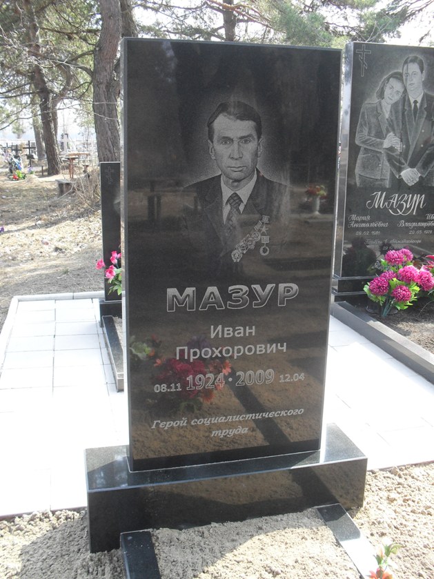 Указом Президиума Верховного Совета СССР от 30 марта 1971 года за выдающиеся заслуги в выполнении заданий пятилетнего плана, достижения высоких технико-экономических показателей, Мазуру Ивану Прохоровичу присвоено звание Героя Социалистического Труда с вручением ордена Ленина и золотой медали «Серп и Молот».