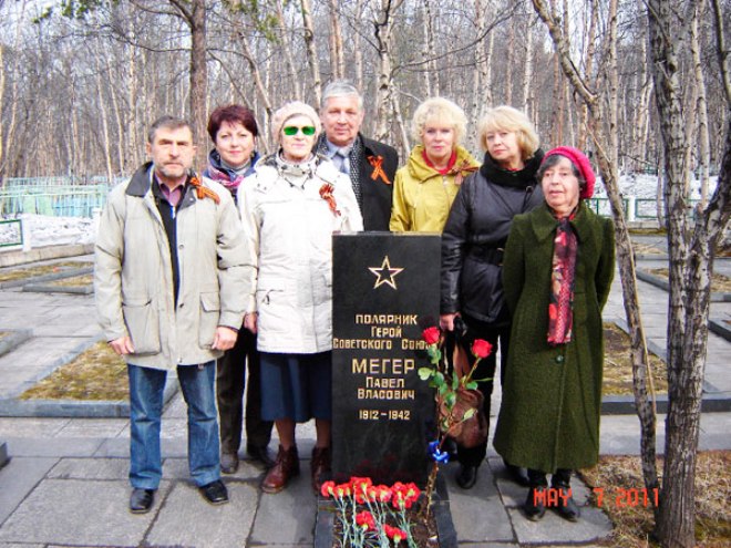 Тело Героя было отправлено Мурманск и захоронено в братской могиле №16 на воинском кладбище. В настоящее время – это Мемориале защитников Заполярья, и П.В. Мегеру установлен индивидуальный памятник.