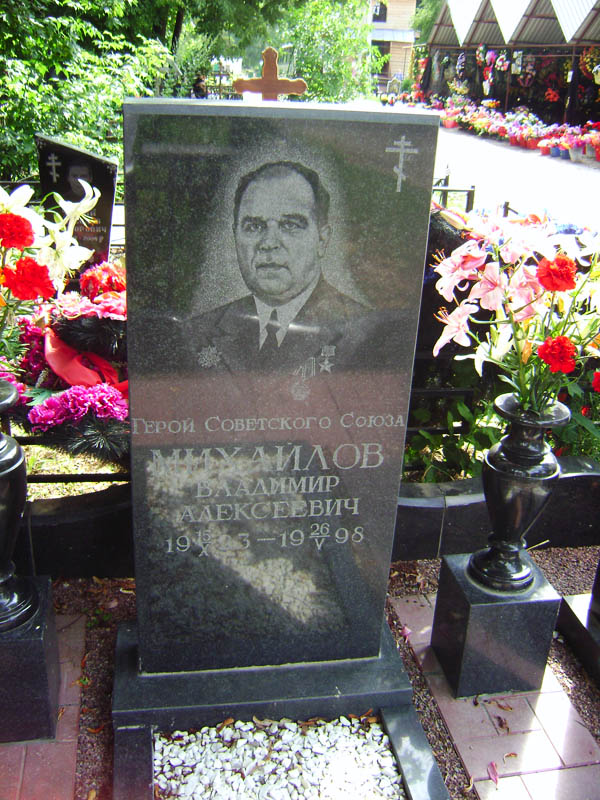 Главное же, продолжали ползти высокие, громоздкие "тигры" — чёрные грохочущие чудовища с крестами на бортах. "Нельзя уходить! — промелькнуло в сознании.— Пока есть снаряды, надо биться!" И Михайлов продолжал стрелять. За полчаса раненный, истекающий кровью наводчик уничтожил шесть "тигров". Отважный артиллерист оказался сильнее грозных машин. В.А. Михайлов потерял сознание и не помнил, как его увезли в госпиталь.