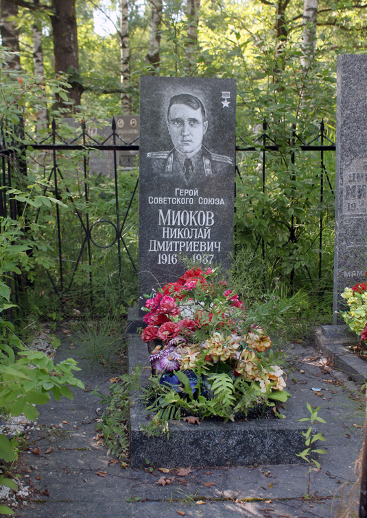 С 1958 года полковник Н.Д.Миоков — в запасе. Жил в городе Пушкин Ленинградского горсовета. Работал на железной дороге.