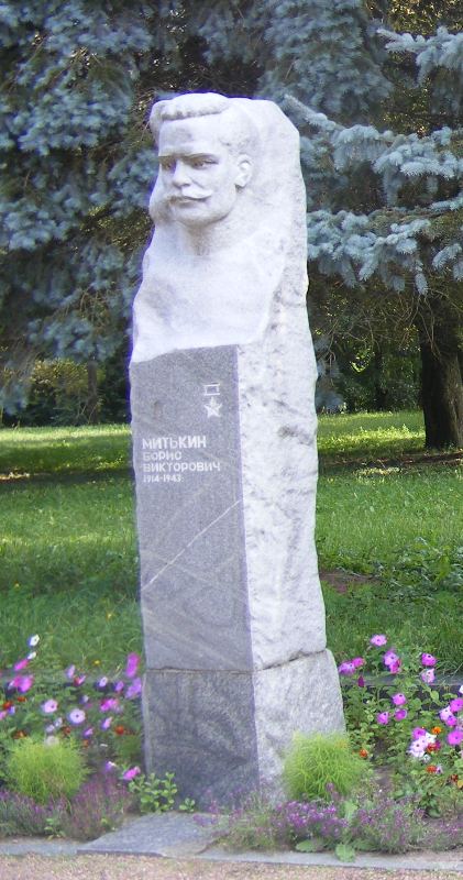 В городе Коростышев Житомирской области на Аллее Героев Б.В.Митькину установлен бюст.