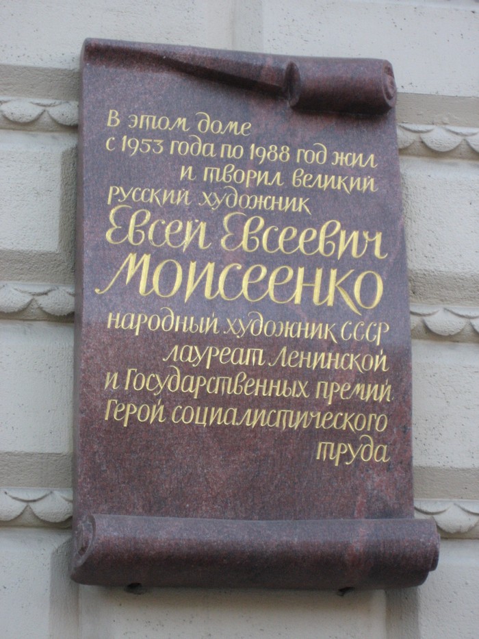 Мемориальная доска Е.Е. Моисеенко по Суворовскому проспекту, дом 56, г. Санкт-Петербург. Фото Алексея Пиголицына (2011 год).