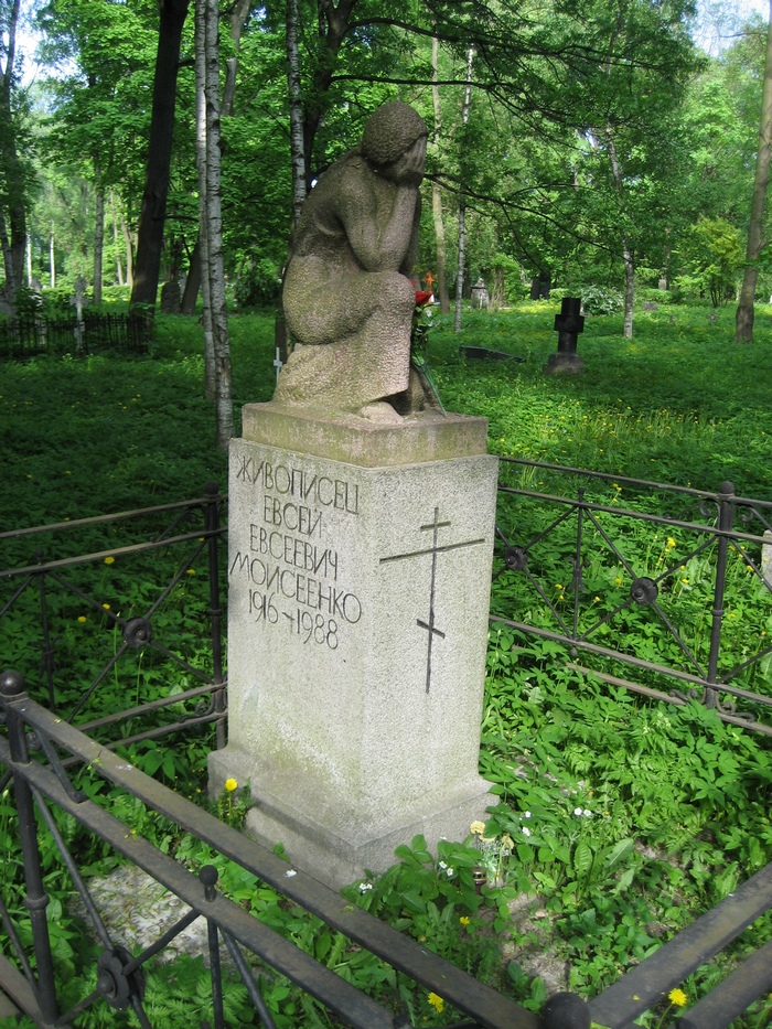 Надгробный памятник Е.Е. Моисеенко на Литераторских мостках Волковского кладбища в Санкт-Петербурге (скульптор В.Л. Рыбалко, жена Е.Е. Моисеенко). Фото Алексея Пиголицына (2011 год).