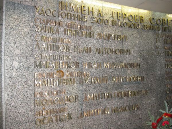 В городе Кировск Ленинградской области в музее-диораме «Прорыв блокады Ленинграда». Имена Героев Советского Союза, удостоенных этого высокого звания при прорыве блокады Ленинграда. Фото Александра Прищепова (г.Санкт-Петербург).