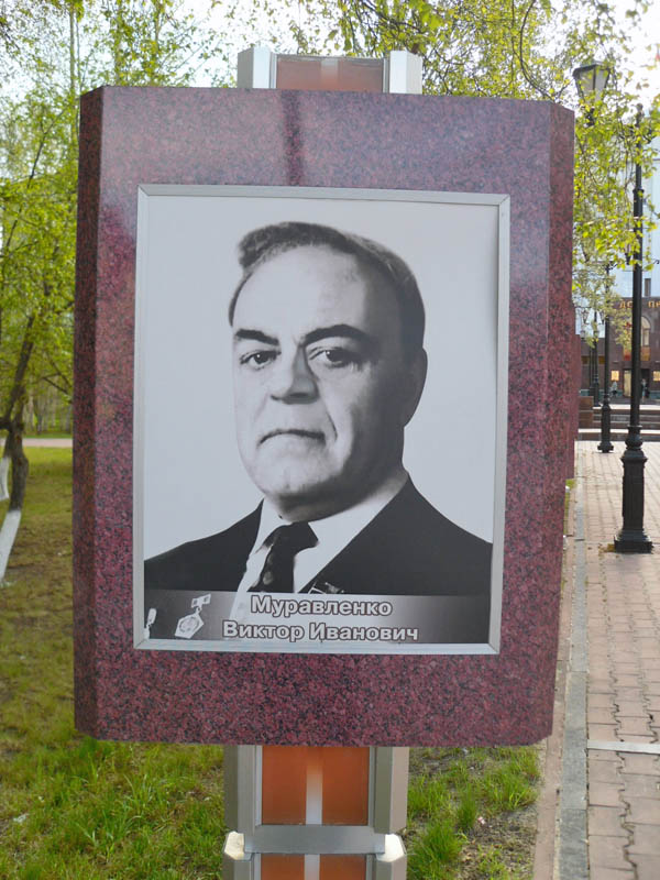 Стела с портретом установлена в городе Ханты-Мансийск у здания Правительства ХМАО-Югры на аллее Почётных граждан Ханты-Мансийского округа. Фото Алексея Шабанова. 25.05.2011 г.