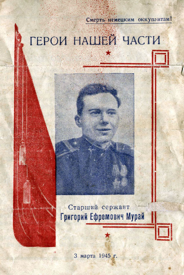 Мурай Григорий Ефремович - помощник командира взвода снайперов 508-го стрелкового полка (174-я стрелковая дивизия, 31-я армия, 3-й Белорусский фронт), старший сержант – на момент представления к награждению орденом Славы 1-й степени. Один из немногих полных кавалеров ордена Славы награжденных четырьмя орденами Славы.