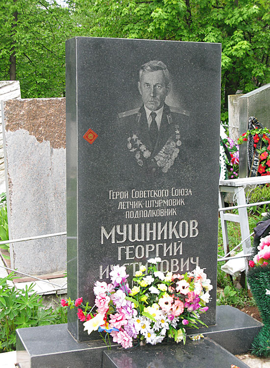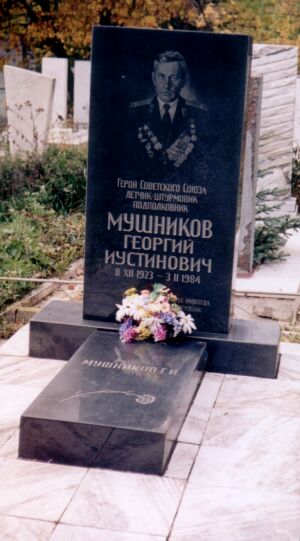 Мушников Георгий Иустинович - командир звена 140-го гвардейского штурмового авиационного полка 8-й гвардейской штурмовой авиационной дивизии 1-го гвардейского штурмового авиационного корпуса 2-й воздушной армии 1-го Украинского фронта, гвардии старший лейтенант.
