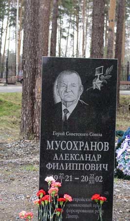 Александр Филиппович Мусохранов скончался 22 декабря 2002 года. Похоронен в Аллее почетного захоронения на местном кладбище.