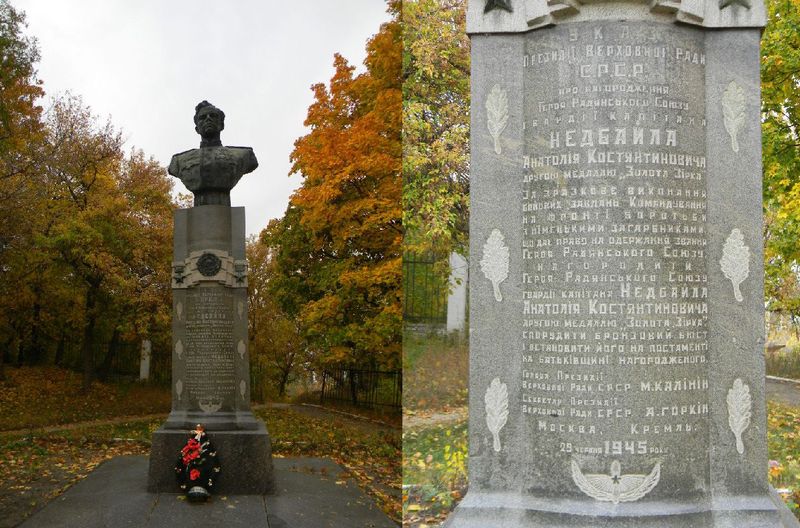 Бронзовый бюст Героя установлен в родном городе Изюм.