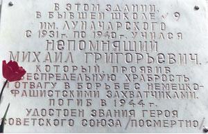 В Брянске на здании профтехучилища (бывшем здании школы, где учился М.Г.Непомнящий) установлена мемориальная доска.