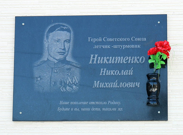 Никитенко Николай Михайлович - командир звена 958-го Рижского штурмового авиационного полка 280-й смешанной Островской авиационной дивизии 14-й воздушной армии 3-го Прибалтийского фронта, младший лейтенант.