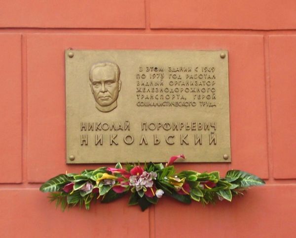 На фасаде управления Западно-Сибирской железной дороги установлена мемориальная доска в честь Никольского.