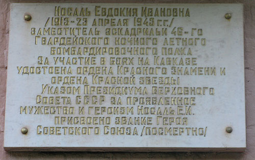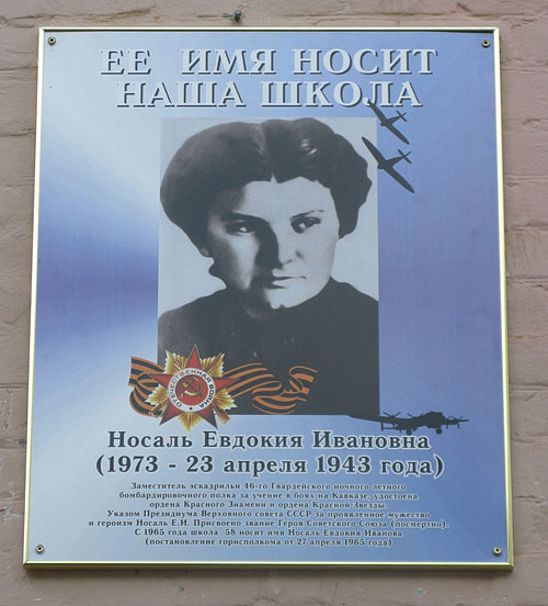 Носаль Евдокия Ивановна - заместитель командира эскадрильи 46-го гвардейского ночного бомбардировочного авиационного полка 218-й ночной бомбардировочной авиационной дивизии 4-й воздушной армии Северо-Кавказского фронта, гвардии младший лейтенант.