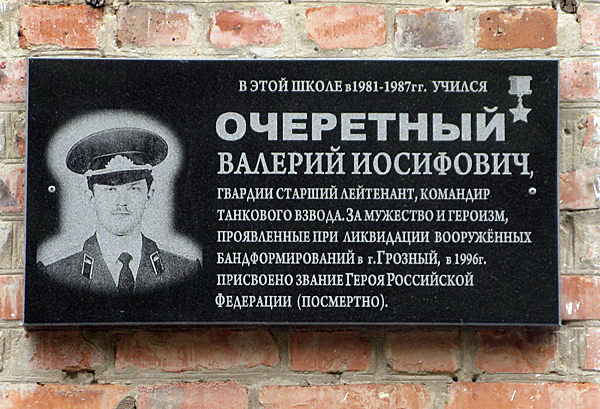 Очеретный Валерий Иосифович - командир танкового взвода отдельной танковой роты 19-й Краснознаменной Воронежско-Шумлинской ордена Трудового Красного Знамени и ордена Суворова II степени мотострелковой дивизии 42-го армейского корпуса Северо-Кавказского военного округа, старший лейтенант.